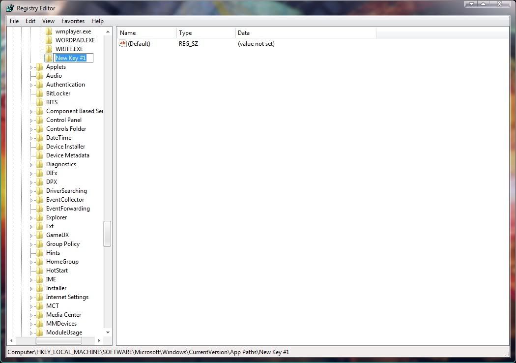1. Create a new sub-key (Right-Click on App Paths – New - Key) with the name of the executable file that you wish to add to the path. e .g.,