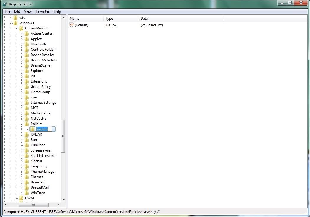 HKEY_CURRENT_USER\Software\Microsoft\Windows\CurrentVersion\Policies